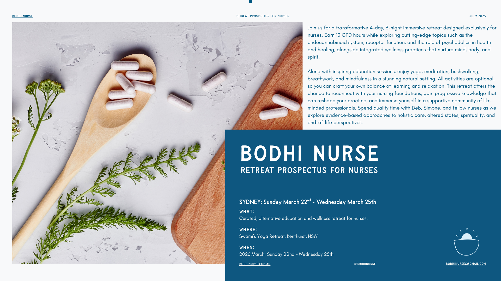 Our education retreat is a 3 night, 4 day ‘long weekend’ for you. You will earn 10 CPD points alongside a wealth of new knowledge and integrated wellness. We include yoga, meditation, bushwalking & more. All activities optional.